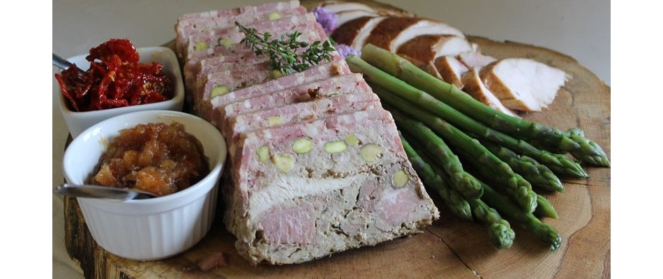 Pork, chicken bacon & apricot terrine with tomato chilli chutney